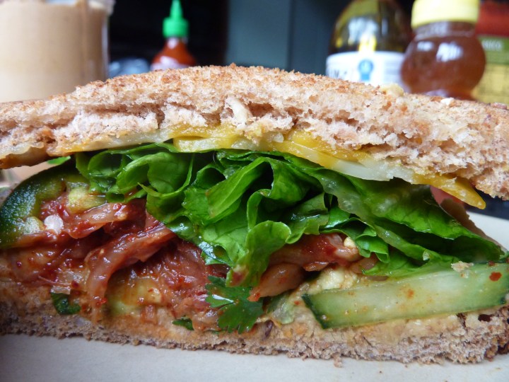 Kimchi can be done up a number of ways to delight your taste buds. Yesterday my husband and I indulged in a delicious Kimchi sandwich.