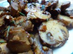 Sautéed mushrooms: beet juice, garlic, salt, cracked pepper, chili powder, fennel, rosemary, paprika, cinnamon, and sriracha. No butter, no oil but just as good…better!