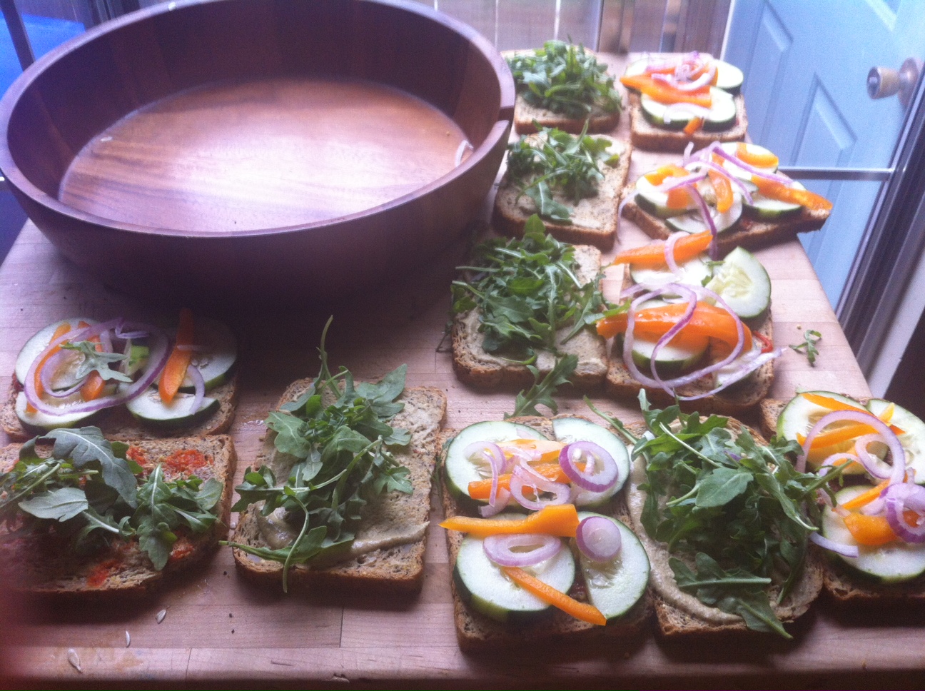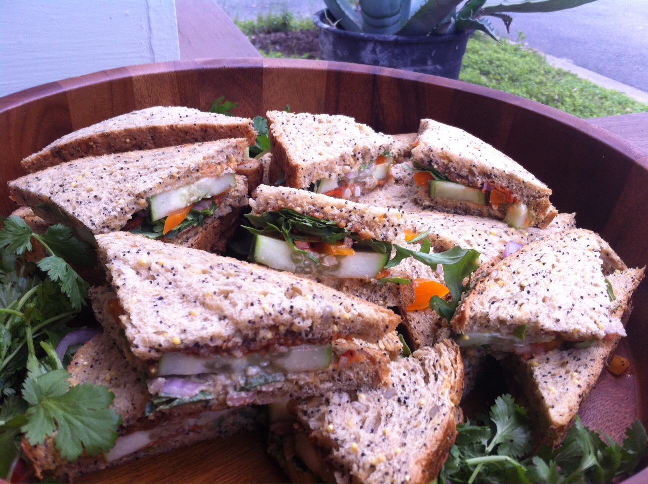 We had brunch out and about, took our first dunk of the season into Barton Springs, attended the Succulent Festival at Zilker Botanical Gardens, and managed to pick up a few ingredients on our way home to make some yummy birthday triangle sandwiches. I figured since we were attending a “game themed” birthday bash that I should channel my inner child and make some triangle sandwiches–adult style:)