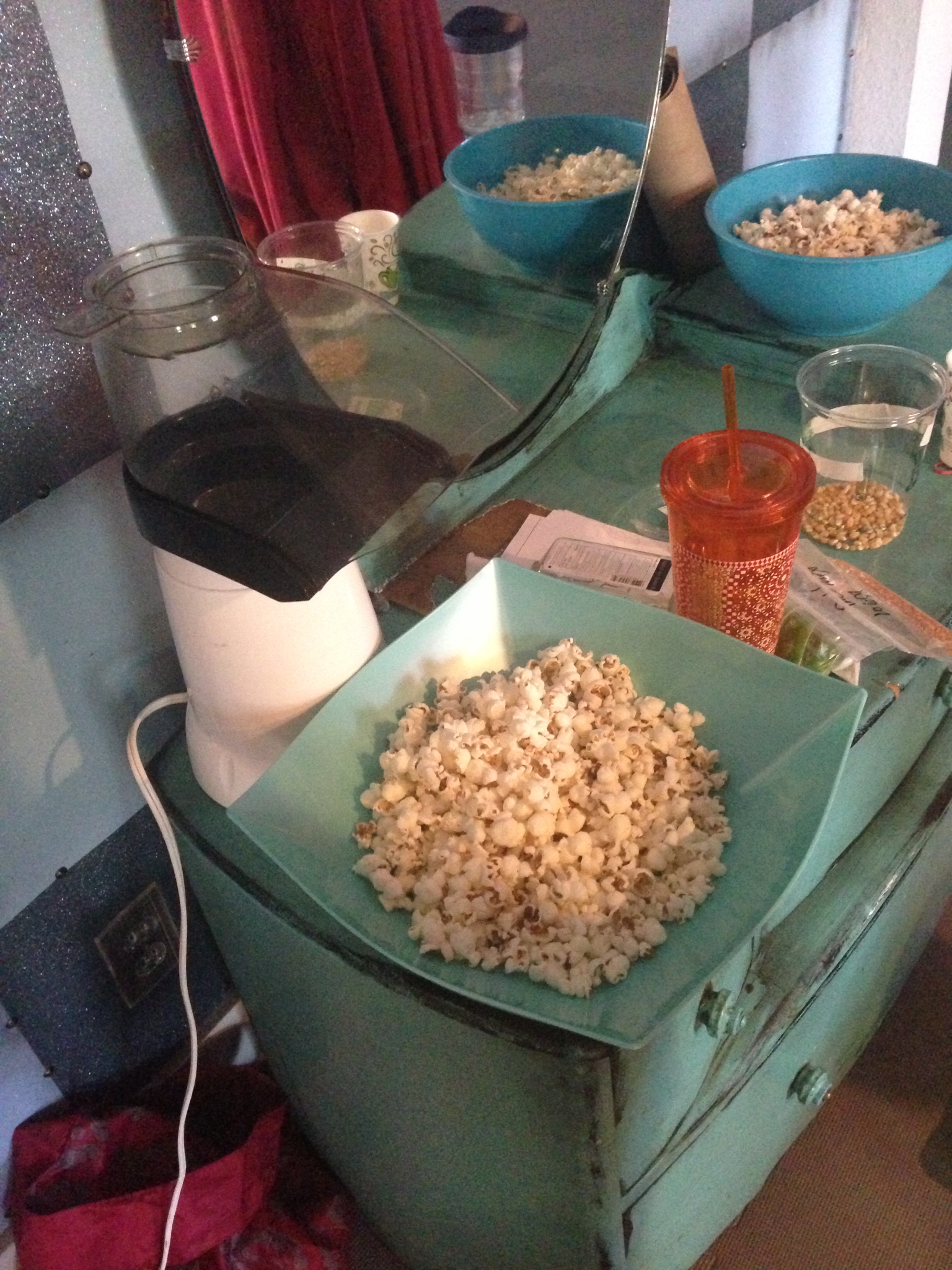 We finished up with allowing the kids to dump their kernels into the air-popper and had a good ‘ol fashioned popcorn party. They had 3 different seasoning to choose from to flavor their popcorn with: cumin & cinnamon, salt & lime, or taco seasonings.