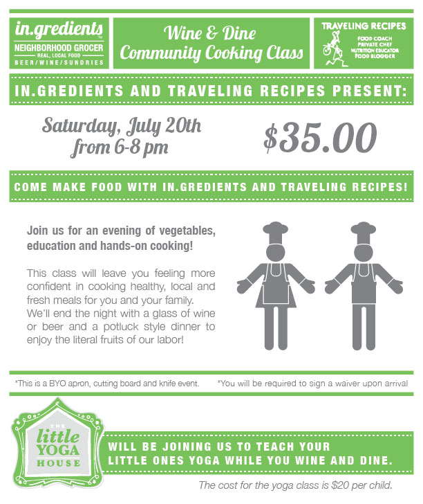 As a public school teacher I know that many people gain so much from hands-on learning and visual learning…so that’s my mission with these classes! The “Wine and Dine” class is a lot like my “Healthy Happy Hour” class but I am partnering up with in.gredients (Austin’s own fresh, local, and zero waste community corner store!!) We will be conducting the class at their location and sure would like to see you there.