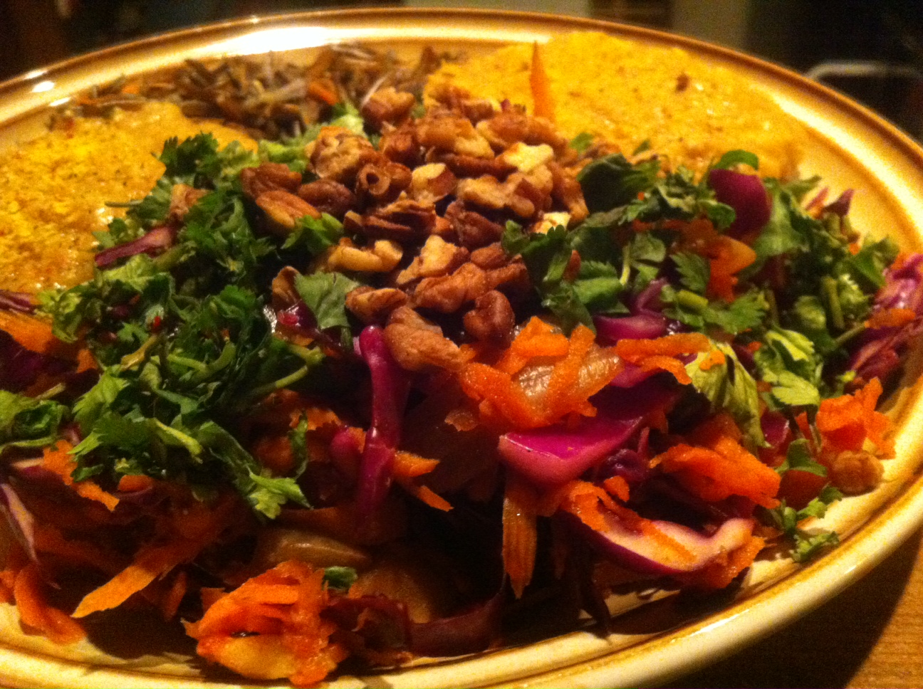 3) Wild rice with cilantro, pecans, and a dash of tomatillo salsa.