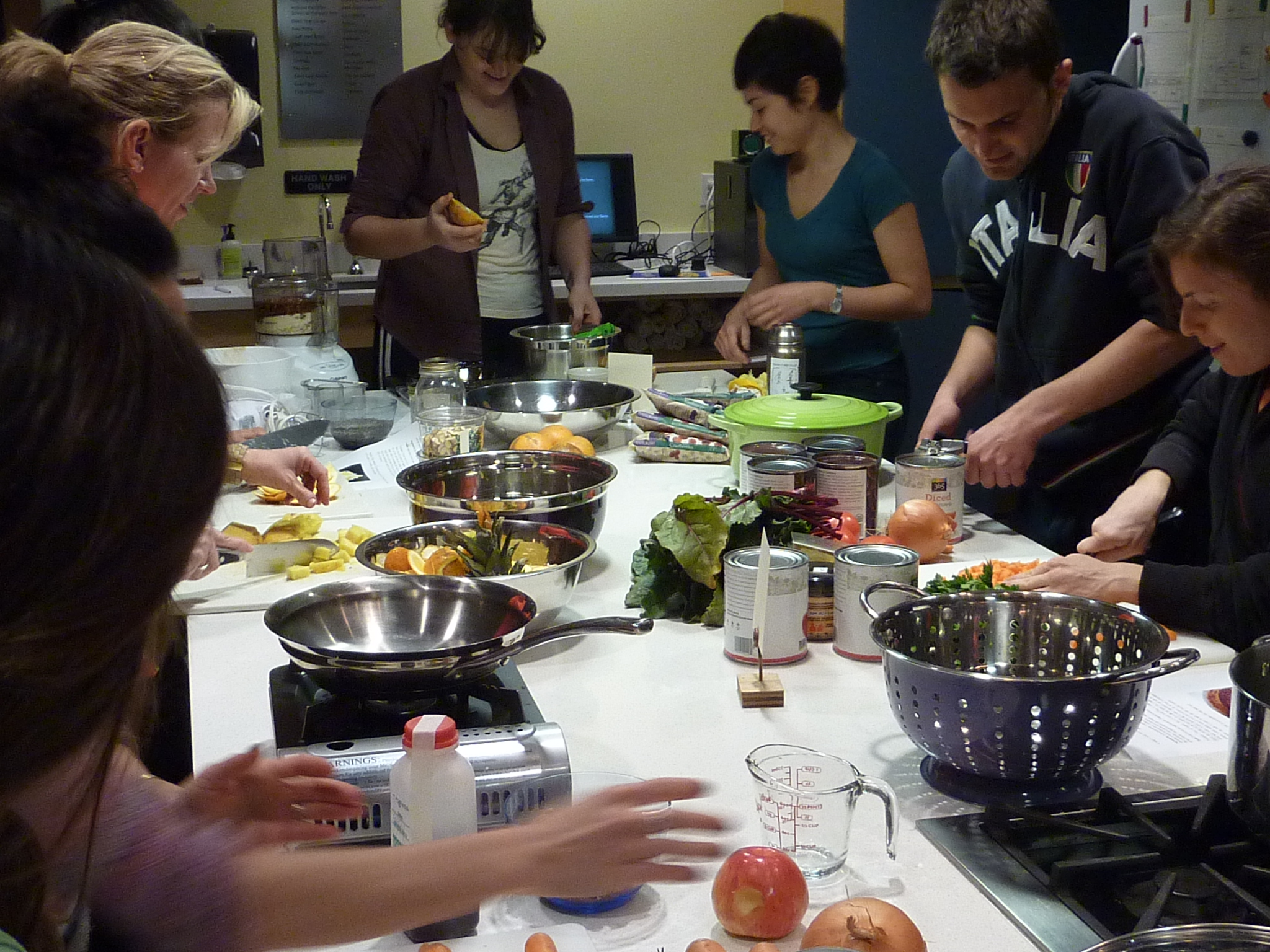 Traveling Recipes & in.gredients merge forces to put on a free, local, hands-on and education cooking class for the Austin community. We are supported by a grant from the Texas Department of Agriculture. Each class we all meet up at in.gredients at 6pm sharp. At 6:15 we caravan over to the incredible, state-of-the-art industrial kitchen at SFC. This is where the magic begins to unfold.