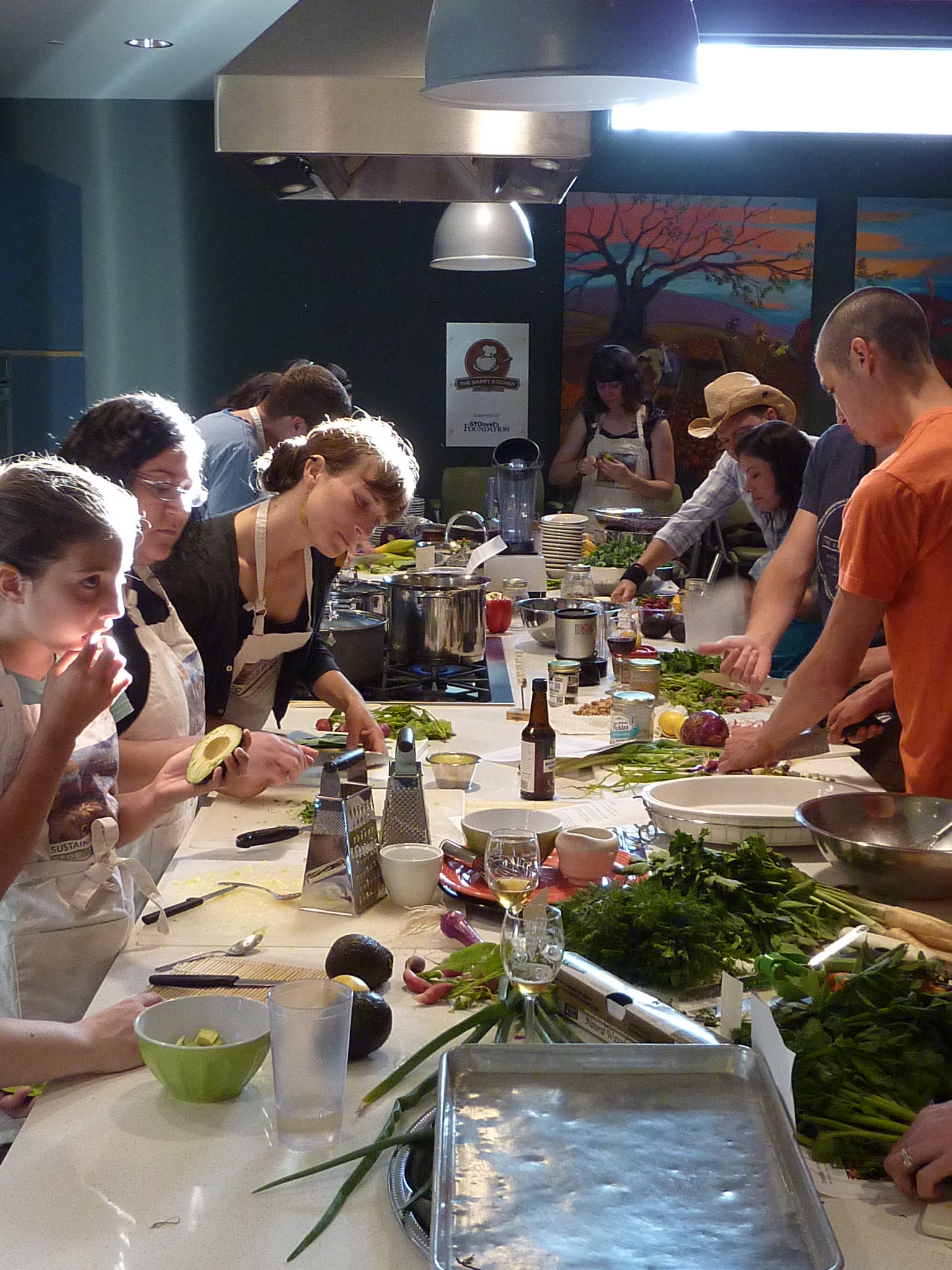 Each participant of this event engages in the mission and vision of the class. We have cultivated a vibe for these classes that goes beyond just a free cooking class. In the weeks leading up, we hone in on how we can create a space of community, openness, learning, local & sustainable advocacy and of course…the love that real & wholesome food emanates. Then, once everyone has gathered their beer, wine and kombucha, we head over to the Sustainable Food Center’s kitchen and the magic unfolds for the next 3 hours! Take a gander…