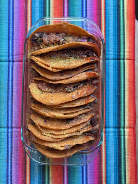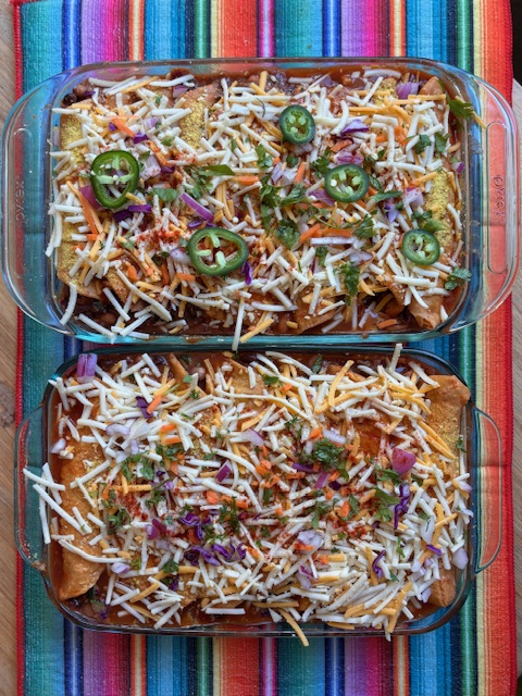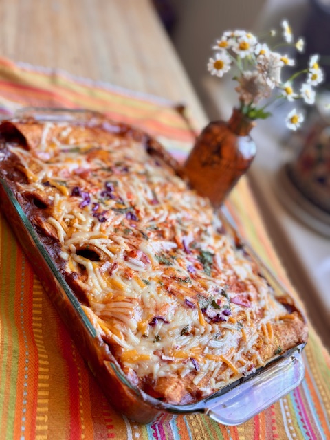Yesterday, I whipped up a big batch of what I’m calling my Immunity-Boosting, Fiber-Packed, Flavor-Bursting Enchiladas — one tray for my cousin and one for us. These plant-based beauties are inspired by Dr. Fuhrman’s GBOMBS (Greens, Beans, Onions, Mushrooms, Berries, and Seeds/Nuts) — the ultimate immune-boosting, anti-inflammatory food protocol. This dish is loaded with all the good stuff, and (bonus!) no one misses the cheese. It’s a hearty, comforting meal that works for all eaters — plant-based or not.