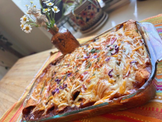This recipe, like the experience that inspired it, is all about nourishment — for body and spirit. Whether you’re supporting someone you love or just craving a wholesome, flavorful dinner, these enchiladas — paired with a simple side of berries — have your back. It’s a full-spectrum GBOMBS meal that nourishes deeply and tastes incredible.
