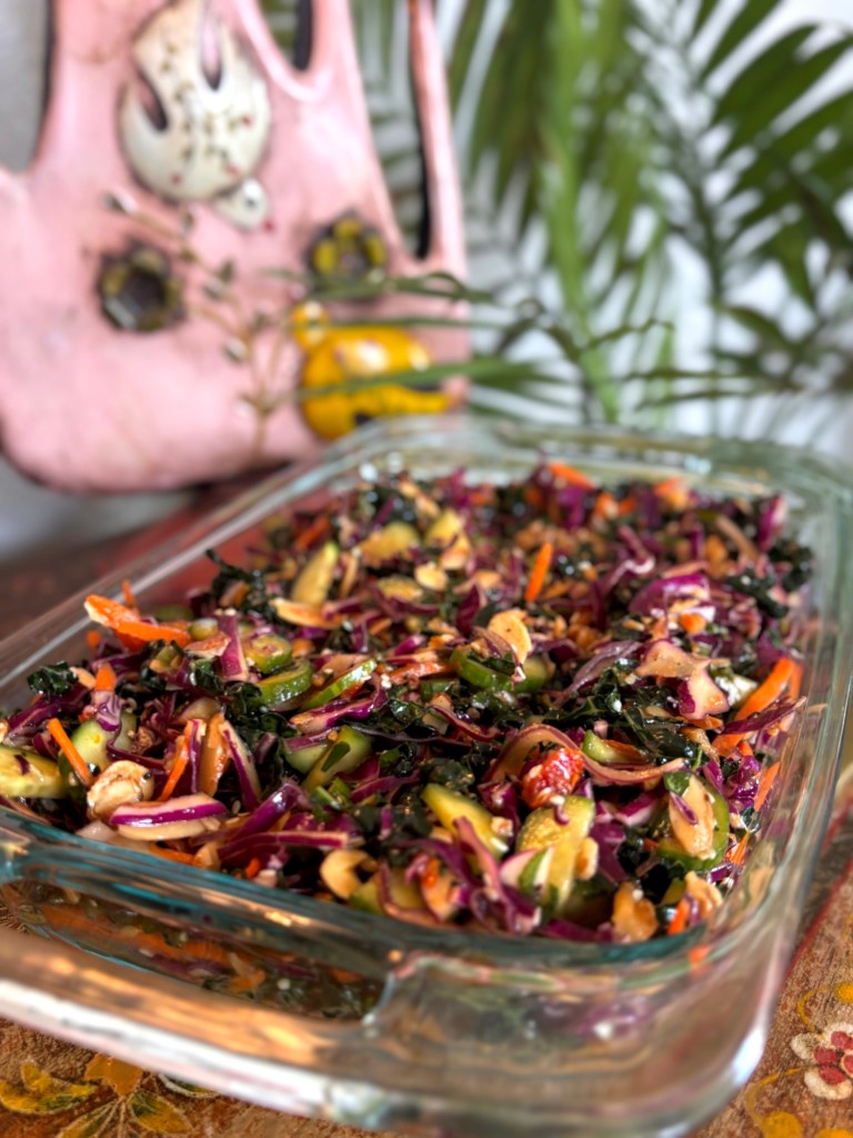 Iâm putting together a vibrant, flavor-loaded Raw Rainbow Cabbage & Kale Salad for todayâs family BBQâand Iâve got a good feeling itâll be a crowd-pleaser.