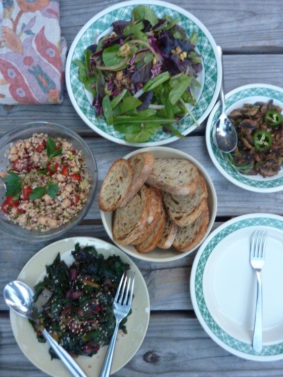 Smoky and spicy sautéed mushrooms, sesame chard, bean and basil cracked wheat, and a walnut, red cabbage and avocado salad. YERM!!!! Last night my husband and our roommate (for this month) had a vegan and scrumptious feast…these boys ate this food up like it was BBQ!!! Garbanzo, basil, and cracked whet salad: (did you know […]